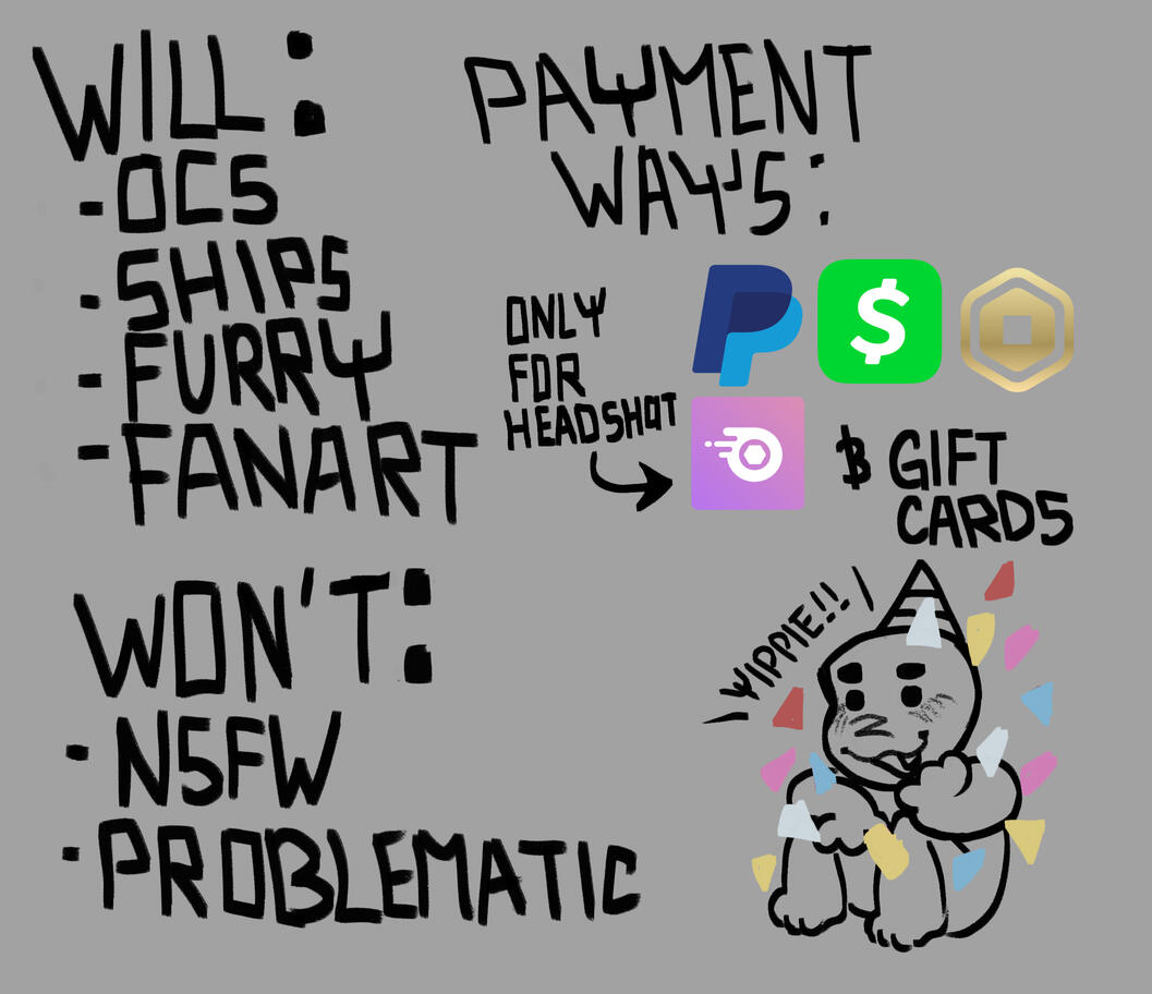 Commissions are open! DM me on discord or twitter if you're interested.I take full payment upfront and do not do refunds after I am finished, for now I am only doing sketch commissions until I get more rendered examples to share and pricing sorted.I take Paypal, Gift cards, Cashapp, Steam games, and Discord Nitro. (I do not take exposure as a payment, please do not offer me it as payment.)
